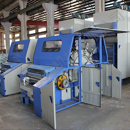 本機主要適用于山羊絨、兔絨、牦牛絨、蠶絲、化纖等散纖維,適紡纖維長度為16-80mm。將電子稱重喂毛機均勻送來的纖維層進行開松和梳理,使所有呈卷曲,塊狀的纖維理成基本伸直的單纖維狀態,后經剝網圈條供后道工序使用。