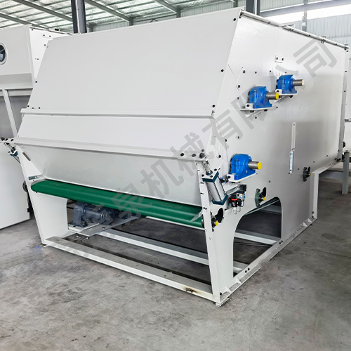 把各種捆包纖維、原料經電子稱重后,喂入平簾輸送至主體混倉內,再由三道開松輥高速開松混合后,經輸棉風機以適量的風量輸送纖維原料供后道工作使用。經本機開松混合后的纖維、原料效果好,混合均勻,以備梳理使用。