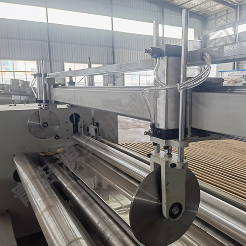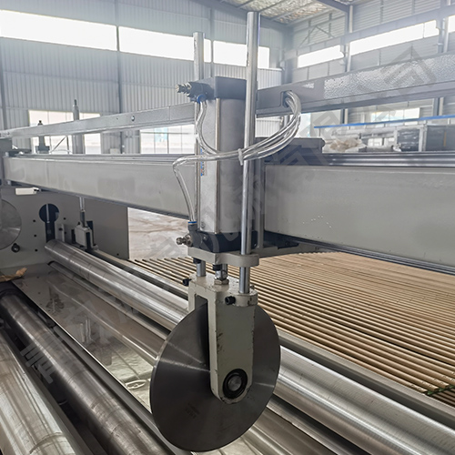 該機器采用飛刀切割或電熱絲方式橫切,并配有四把縱切切刀,其主要用于將噴膠棉、無膠棉、硬質棉等進行切邊、收卷并裁剪成符合要求的尺寸規格。本機具有計數功能、跟蹤橫切功能。
